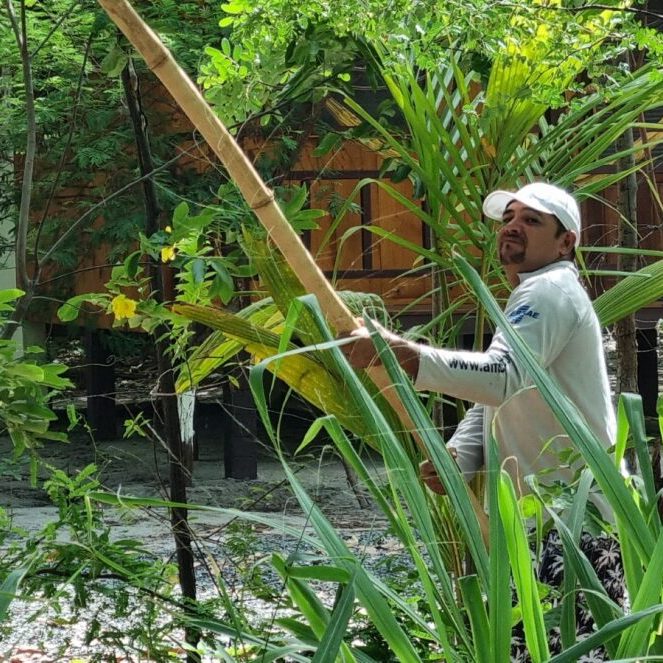 Unkraut jäten, Wege freihacken und Laub rechen. Oder auch mal Riesengras und Carnaubeirapalmen umpflanzen. Dazu solltet ihr einigermaßen „hitzefest“ sein. Im Pavillon ist auch Hilfe erwünscht. Kehren und Küche nach Benutzung sauber halten gehören zum Alltag und nicht zu euren Arbeiten. Jedoch ist Mithilfe bei Grundreinigungsarbeiten erwünscht. Vielleicht auch mal Streicharbeiten, die Lampen am Wegesrand putzen, den Schotter gerade ziehen, Saft für alle machen, die Mangos verarbeiten oder Andreas bei seinem aktuellen Projekt zur Hand gehen. Sehr willkommen wäre auch jemand, der sich mit südamerikanischen Kräutern auskennt und uns anleiten kann.
